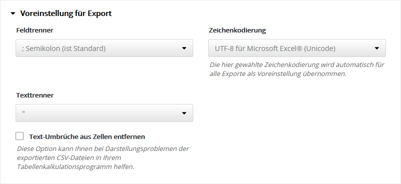 Folgende 'HTML-Editoren' sind in pmailer integriert und nutzbar: Grundeinstellung ExportHier legen Sie die Voreinstellung für den Export von CSV-Dateien fest, z. B. für den Export von Abonnentendaten. Bei der Durchführung jedes Exportes können Sie bei Bedarf auch eine abweichende Einstellung wählen. Standardeinstellung ist die Option 'UTF-8 für Microsoft Excel® (Unicode)', technisch gesprochen 'UTF-8 mit BOM'. Dieses Format wird von den meisten Officeanwendungen automatisch erkannt, so dass Umlaute und Sonderzeichen ohne manuelle Formatwahl korrekt importiert werden. StatistikeinstellungenTragen Sie Ihre eigenen Maximalwerte ein, um die rot|gelb|grün Farb-Umschaltung der Statistik-Anzeige für Öffungsrate, Klickrate und Bouncerate an die typischen Werte Ihrer Mailings anzupassen. Nur Ihre besten Mailings sollten den grünen Bereich erreichen. Die Farb-Umschaltung erfolgt automatisch in Drittel-Stufen des eingetragenen Maximalwertes. Empfehlung: Notieren Sie aus der Statistik Ihrer bisherigen Mailings die Durchschnittswerte für Öffnungsrate, Klickrate und Bounces. Damit dieser Durchschnittswert zukünftig im mittleren Drittel der Skala landet, tragen Sie das Doppelte dieses Wertes als Maximum in das jeweilige Feld ein. Tragen Sie z. B. 30% als Maximum ein, dann werden anschließend die Werte bis 10% rot, bis 20% gelb und darüberliegende Werte grün gefärbt. Sie sehen sofort, ob Ihr aktuelles Mailing über- oder unterdurchschnittlich abschneidet. Typische Durchschnittswerte: